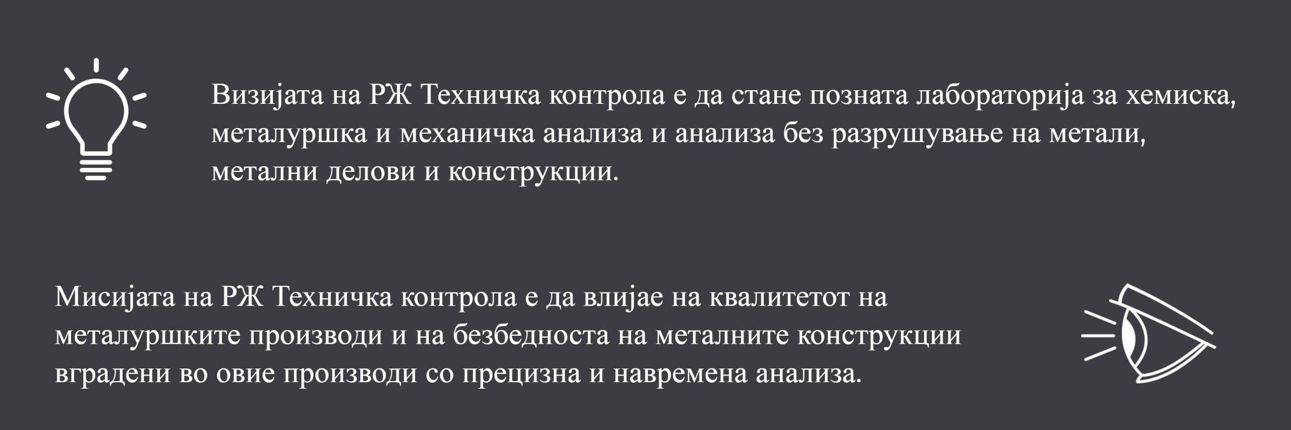 Од 1997 година, РЖ Техничка контрола постои како акционерско друштво. Се состои од неколку лаборатории: лабораторија за металуршки испитувања, лабораторија за испитувања без разрушување и лабораторија за хемиска анализа.